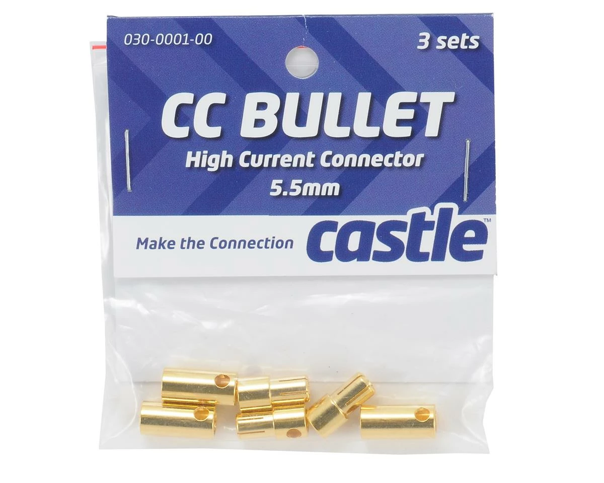 If you want something done right, you usually have to do it yourself. Castle Creations was never totally satisfied with the options for bullet connectors for high power applications, so they designed and manufactured their own. Castle Creations Bullets make a perfect connection, every time. Simple as that. Available in a lovely shade of gold and made in three sizes: 4mm, 5.5mm, and 6.5mm.Â