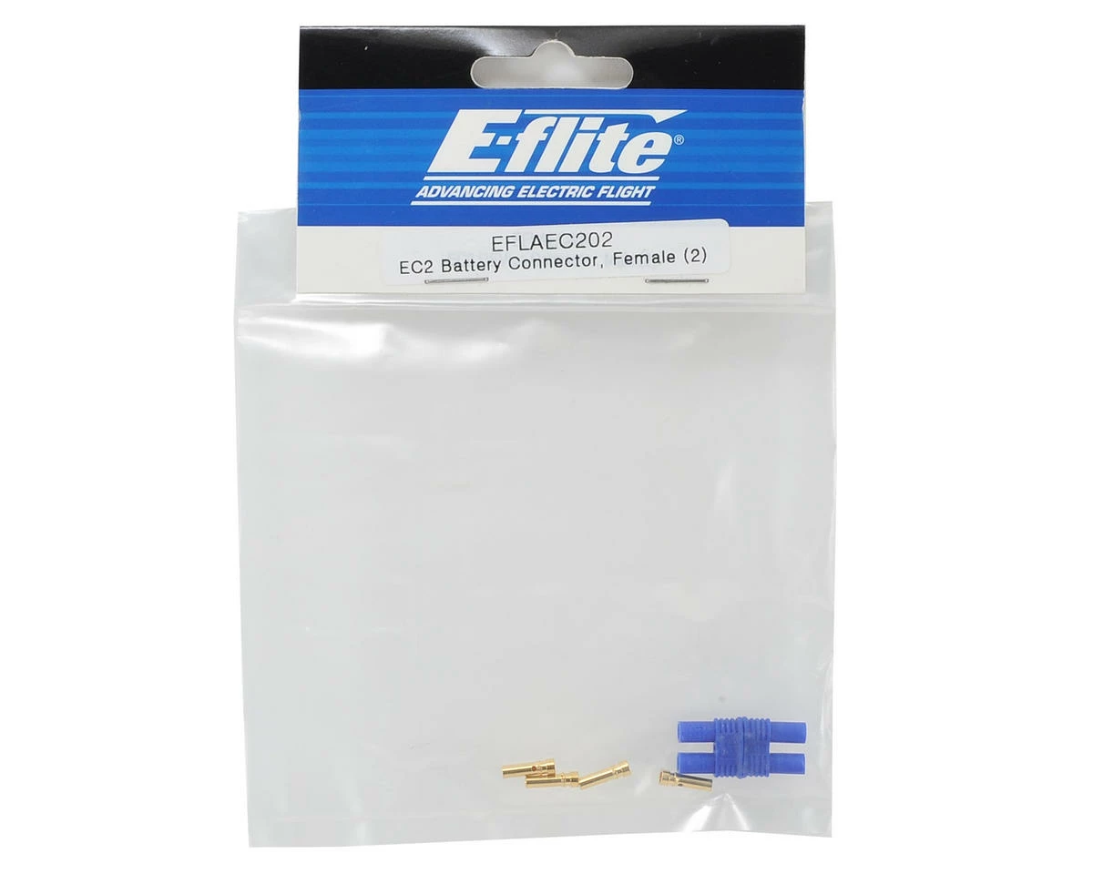 This is a pack of two E-flite EC2 “Female” Battery Connectors. This package also includes four female gold interior bullet terminals.Â