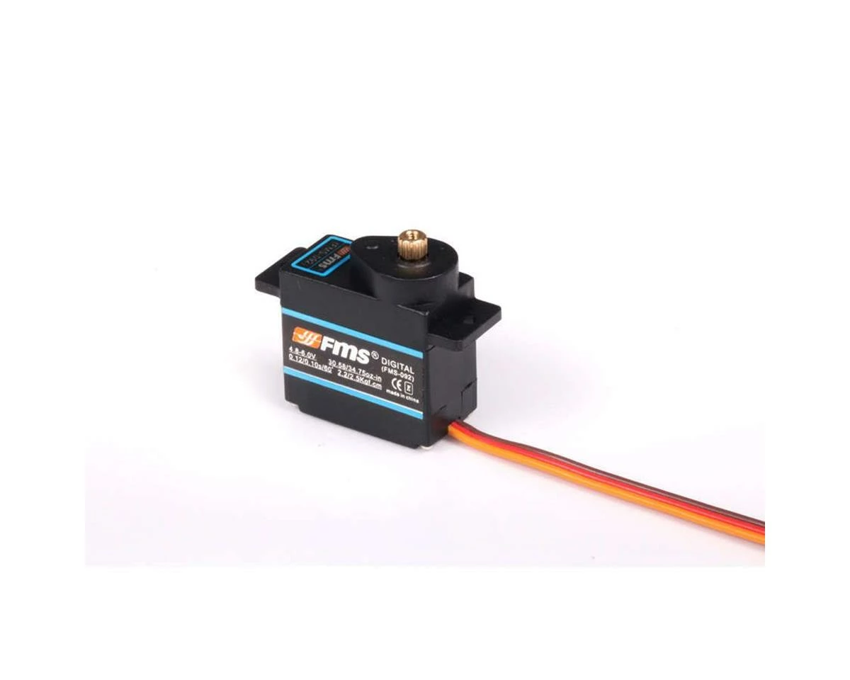 FMS 9g Digital Metal Gear Micro Servo. This is a replacement tail steering servo for the FMS P-51D Mustang Red Tail and other FMS Warbird models.