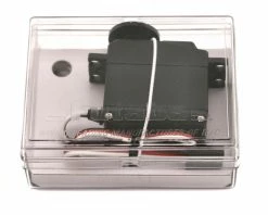 This servo features a coreless motor for reduced weight and high-speed response, and digitally enhanced microprocessors that cut in half the response time from transmitter input to servo reaction. A dual ball bearing gear train and a dust and water resistant-not water proof Black plastic case.
