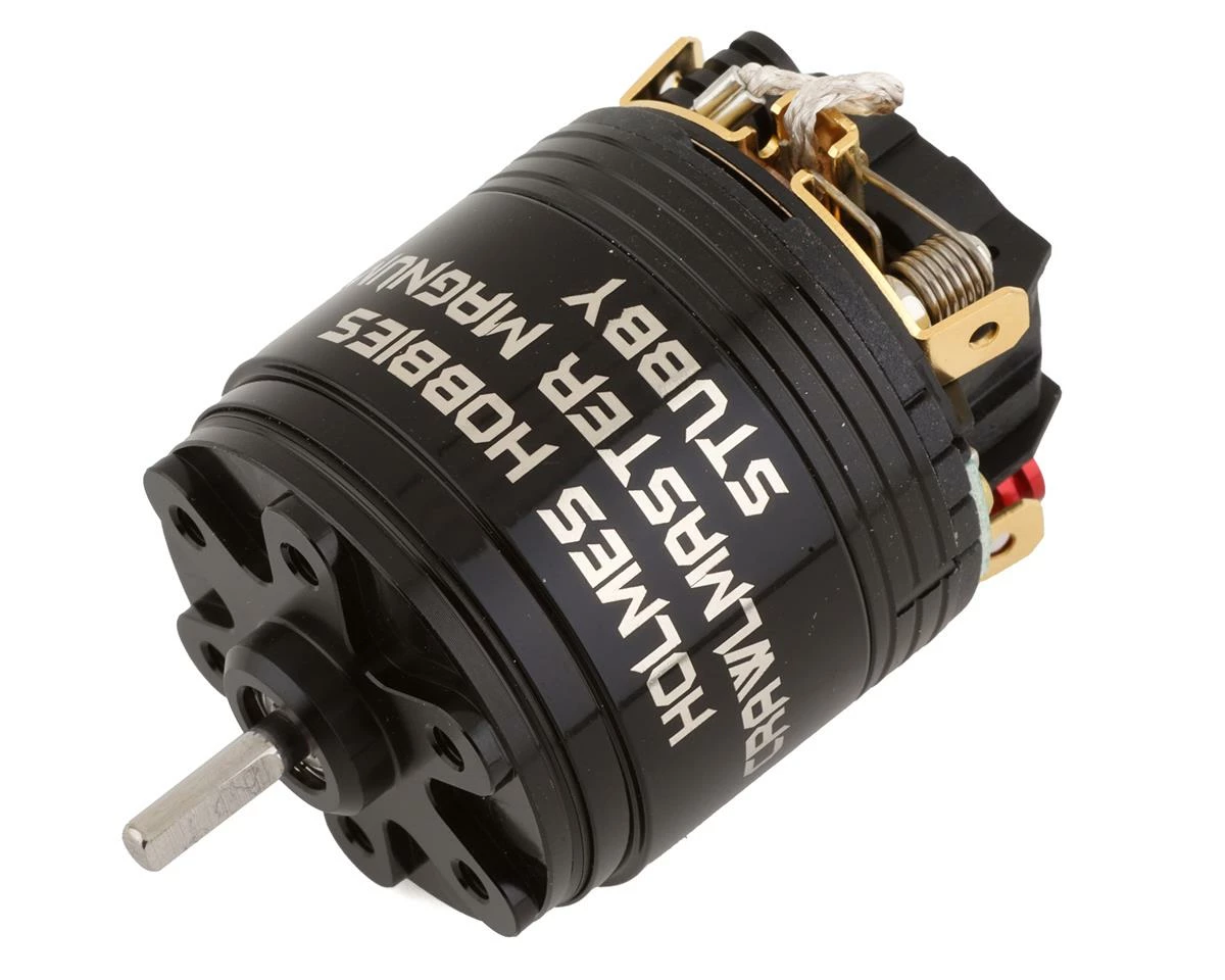The Holmes Hobbies CrawlMaster Magnum Stubby electric motor is a limited production motor that features high performance in a small package. These motors use a larger diameter rotor when compared to the standard CrawlMaster motor giving you extreme torque and the smooth startups. The “Stubby” version is smaller and lighter, specifically for competitive drivers who want top performance in a small and light package.Â