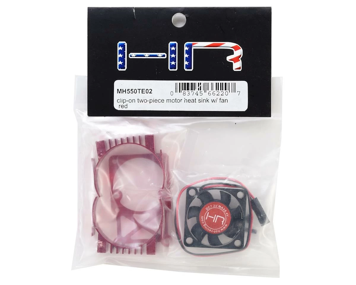 The Hot Racing Clip-On Two-Piece Motor Heat Sink is a universal clip on motor heat sink and fan for use on 540 and 550 size motors. The versatile two-piece heat sink clip provides 8 different width adjustments.