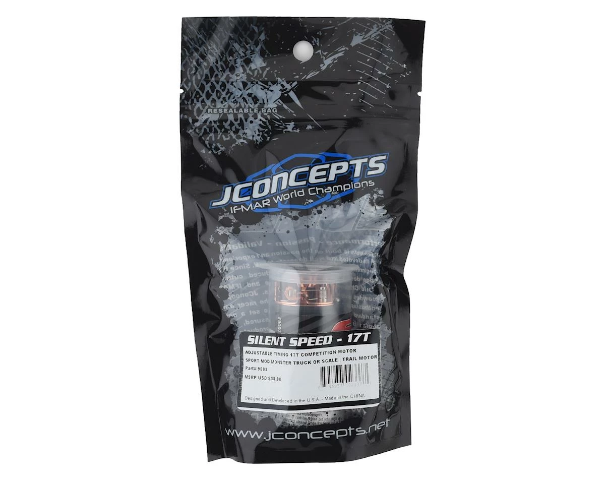 The JConcepts 17T Silent Speed Adjustable Timing Competition Motor is a perfect complement to monster truck racers looking to race sport-mod or scale or trail drivers looking for drive-able and rebuild-able power. One of the best aspects of brushed power is the ability to perform on a budget while performing at a high-level. The 17-turn Silent Speed motor, with dual ball-bearings, adjustable timing can be torn-down, cleaned and re-brushed at any moment for consistent performance.