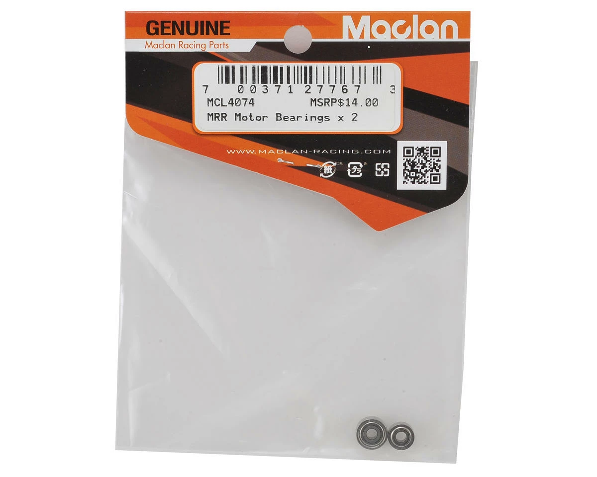 A package of two replacement Motor Bearings suited for use with the Macland MRR series of 1/10 Off Road Electric Motors.Â
