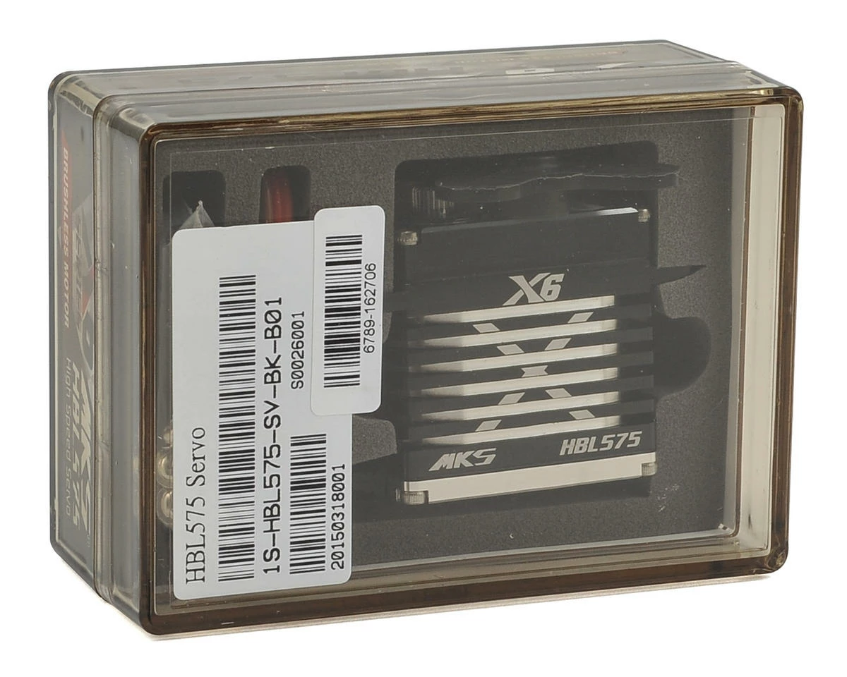 The MKS X6 HBL575 Brushless Titanium Gear High Speed Digital Servo is perfect for 1/10 and 1/8 scale applications that require high speed, low power consumption and superior holding torque, combined with the flexibility of high voltage circuitry in a standard size package.