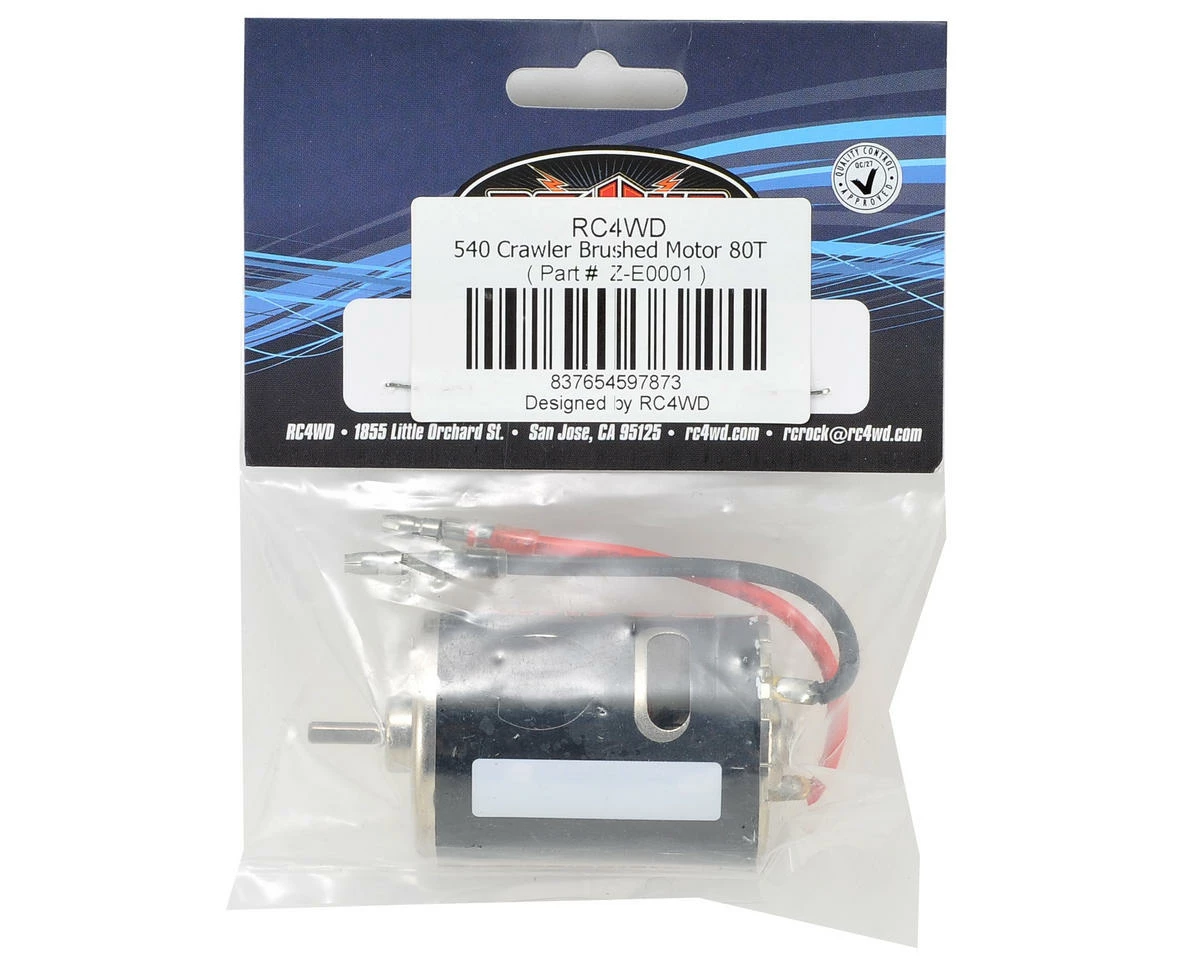 This is an 80 Turn RC4WD 540 Crawler Brushed Motor. This motor was custom made to fit all popular crawler trucks and scale rigs, including the Bully, AX10 and Trail Finder vehicles.