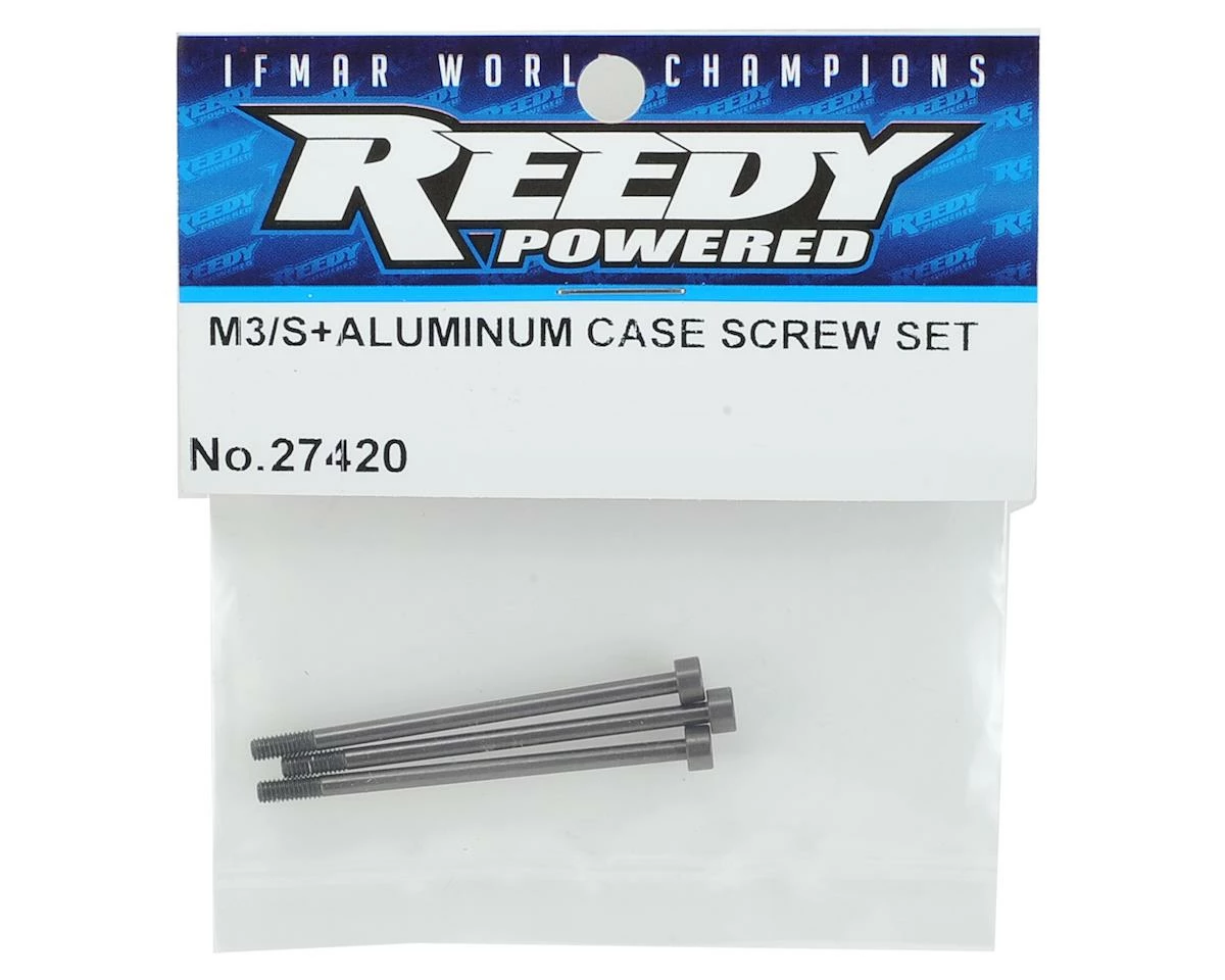 Reedy S-Plus Aluminum Case Screws are a great upgrade for serious tuners. Aluminum screws eliminate magnetic drag and help to increase RPM compared to steel screws. Plus, they are a tad lighter and will help to further reduce weight.
