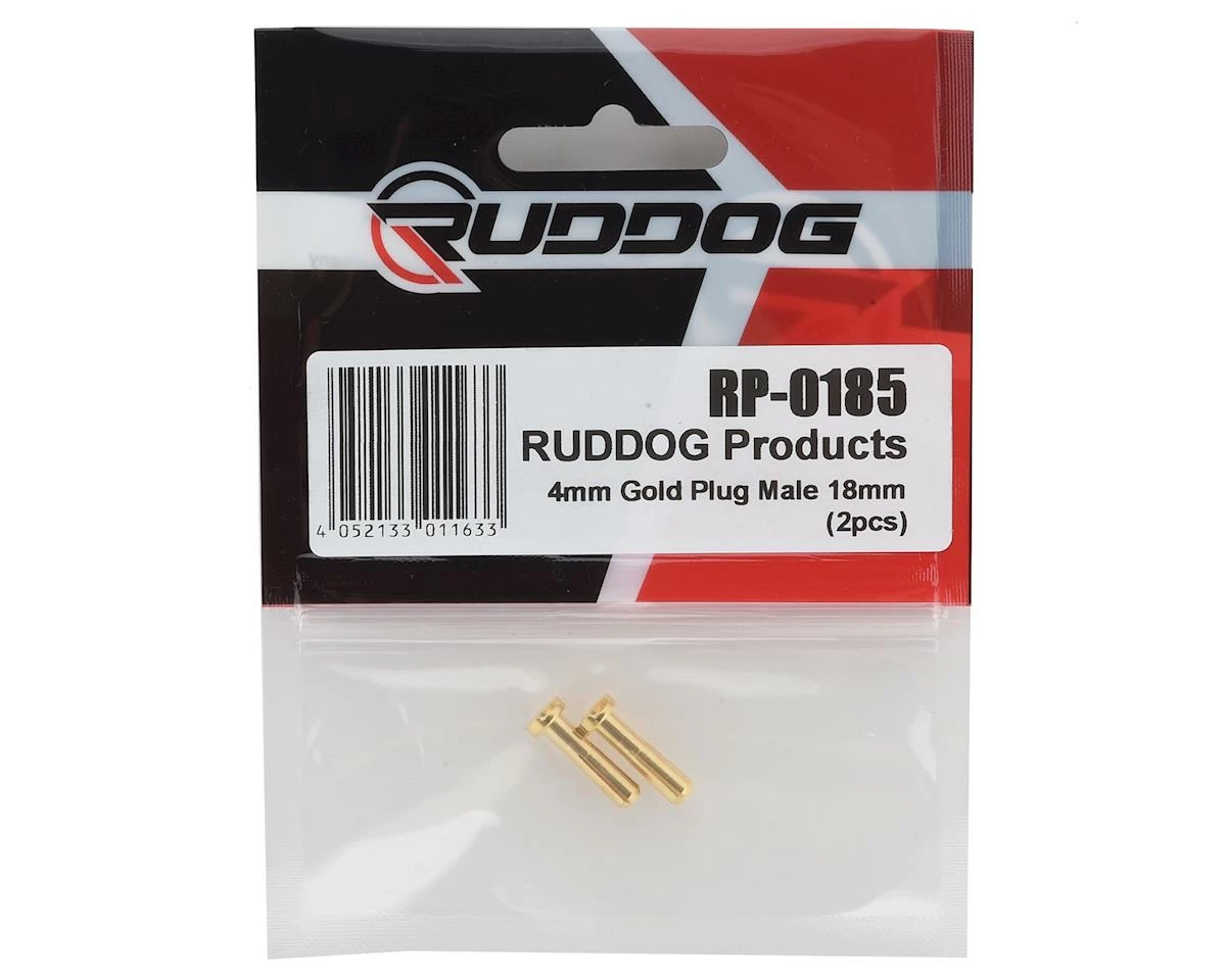 This is a pack of two Ruddog 4mm Gold Bullet Plugs. These male plugs are 4mm diameter and 10mm long. Â