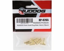 This is a pack of ten Ruddog 5mm Gold Bullet Plugs. These male plugs are 5mm diameter and 14mm long. Â