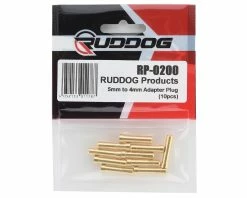 This is a pack of ten Ruddog 5mm to 4mm Bullet Adapters. These adapters go into a 5mm hole and shrink it to 4mm size.