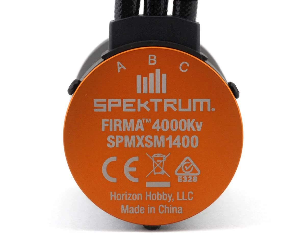 This is a Spektrum RC 4000Kv Firma Sensorless Brushless Motor. The Firma 4000Kv brushless motor is a great choice for 1/10 scale 4WD, 2WD, and on-road models running on 2S LiPo power. Featuring a low cog 4-pole 8-magnet rotor design, CNC machined aluminum housing, insulated high purity copper windings, high-quality alloy steel 1/8″ output shaft, and precision bearings for high durability and smooth rotation. Preinstalled 4mm gold plated bullet connectors for easy installation, and perfectly matched for the Firma 130 Smart ESC.