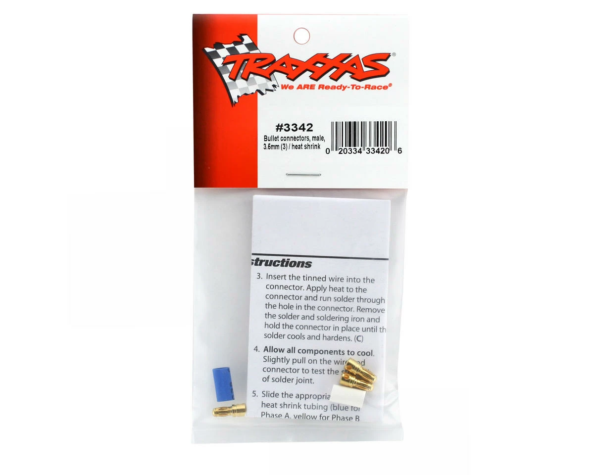 This is a set of three replacement male 3.5mm bullet connectors from Traxxas. These are used to connect the brushless motor to the speed control.