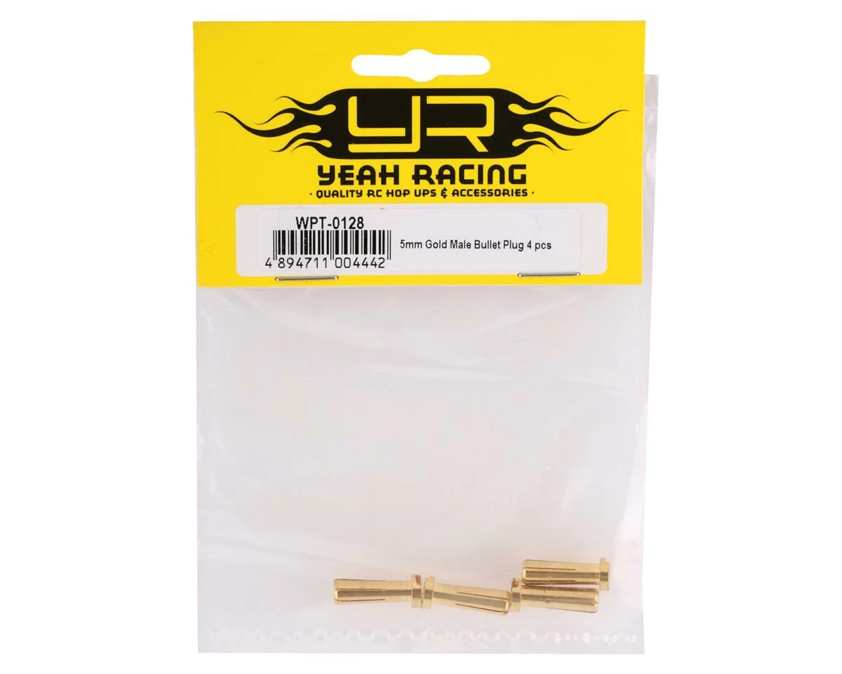 Yeah Racing Male 5mm Gold Bullet Plugs. These high current plugs are great for connecting your ESC to a battery equipped with a 5mm bullet. Package includes four five-millimeter bullet connectors.